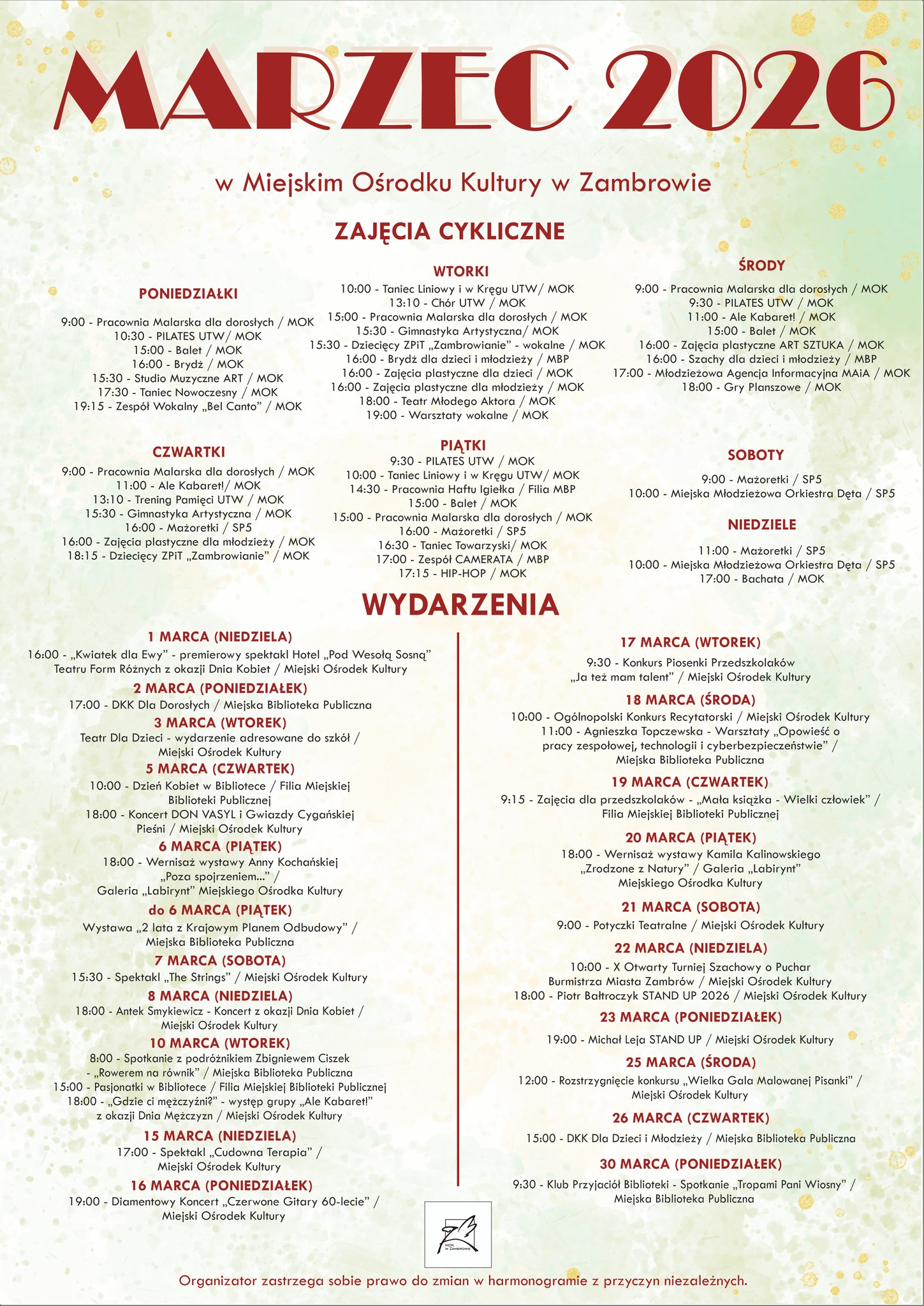 Marzec 2026 w Miejskim Ośrodku Kultury w Zambrowie – miesiąc pełen atrakcji!