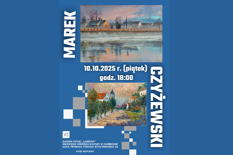 Miejski Ośrodek Kultury w Zambrowie serdecznie zaprasza na wernisaż wystawy malarstwa Marka Czyżewskiego, który odbędzie się 10 października