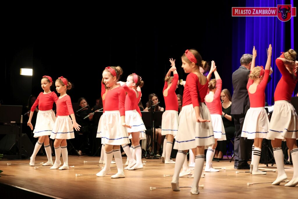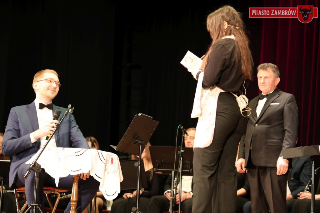 Na zakończenie koncertu Burmistrz Miasta Zambrów Kazimierz Dąbrowski przekazał gratulacje dla orkiestry, grup tanecznych i solistów.