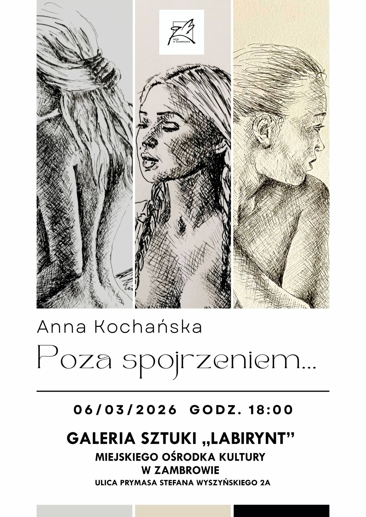 Miejski Ośrodek Kultury w Zambrowie zaprasza na wyjątkowy wernisaż wystawy Anny Kochańskiej pt. „Poza spojrzeniem…”, który odbędzie się 6 marca o godz. 18:00 w Galerii Sztuki „Labirynt”.